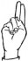 На ћирилици написано ЈАБУКА КОВАЧЕВИЋ састоји се из 15 слова [?]. Исписано ћириличном једноручном азбуком за глувонеме: